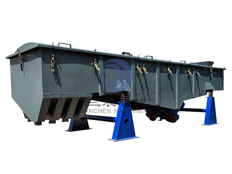 1.SC系列直線振動(dòng)篩利用雙振動(dòng)電機(jī)激振作為振動(dòng)源,使物料在篩網(wǎng)上被拋起,同時(shí)向前做直線運(yùn)動(dòng),通過(guò)多層篩網(wǎng)產(chǎn)生數(shù)種規(guī)格的篩上物、篩下物,分別從各自的出口排出。